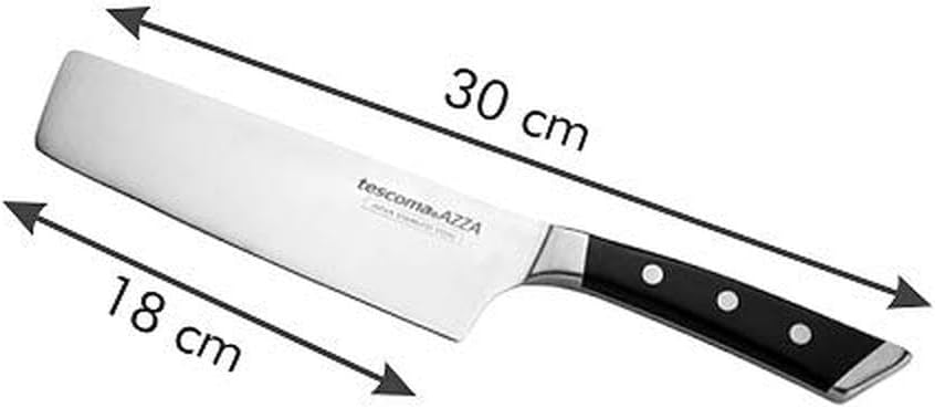 Traditional Japanese knife for cutting and chopping all kinds of food easily and quickly, excellent for cutting vegetables and other ingredients of Asian cuisine. Forged from a single piece of high-grade stainless steel, with a resistant blade, perfect cutting edge and ergonomic handle with solid rivets. AZZA – when you want the best.